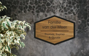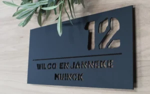 Op zoek naar een naamplaat bij je voordeur in jouw persoonlijke stijl? GraphicSign levert een breed scala aan naamplaten die je zelf kunt ontwerpen. Onze naamborden zijn altijd van hoge kwaliteit. Naamborden kunnen op verschillende manieren worden bewerkt: door middel van vinylbelettering, lasergravure of lasersnijden.